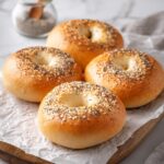Divide your dough into 4 equal parts to make perfectly sized bagels. Then shape each portion into a classic round bagel shape with a hole in the center. Don’t worry if they’re not perfect; the rustic charm adds to their homemade appeal.