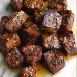 - Toss steak in butter: Once the steak bites are cooked, toss them in the prepared garlic butter until fully coated.