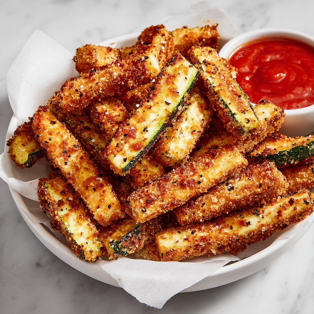 These zucchini fries pair wonderfully with dipping sauces such as garlic aioli, spicy marinara, or a cool ranch dressing to add a creamy contrast. They also make a delicious side to grilled chicken, burgers, or a crisp summer salad, turning any meal into a feast.