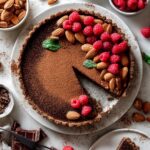 The toasted sliced almonds sprinkled on top add a beautiful crunch and nutty aroma that elevates the presentation. I also love using a few chocolate shavings or a gentle drizzle of melted chocolate for that extra wow factor. Fresh berries such as raspberries or strawberries complement the rich chocolate and almond flavors perfectly and add a pop of color.