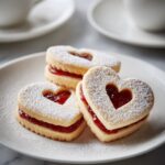 Delight in these charming Almond Heart Cookies, perfect for Valentine’s Day or any special occasion. These Linzer-style jam sandwich cookies feature a buttery almond-infused dough with a sweet raspberry or strawberry jam center, topped with a delicate dusting of powdered sugar. Crispy on the edges and tender inside, they offer a delightful blend of flavors and textures that are both visually appealing and delicious.