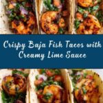 Delicious and crispy Baja Fish Tacos featuring battered and fried white fish fillets served in warm corn tortillas with fresh cabbage slaw and a tangy lime cream sauce. This Mexican-inspired main course offers a perfect balance of crunchy textures and vibrant flavors, ideal for a flavorful and satisfying meal.