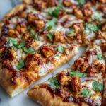 Once out of the oven, sprinkle freshly chopped cilantro over the top. This simple garnish adds a fresh, vibrant contrast to the smokiness and richness of the pizza, making your BBQ Chicken Pizza Delight Recipe ready to serve and savor immediately.