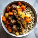 A hearty and comforting Beef and Barley Stew featuring tender beef cubes, nutritious pearl barley, and a medley of vegetables simmered in flavorful beef broth and herbs. Perfect for a cozy dinner that delivers warmth and nourishment in every bite.