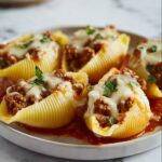 Delicious and comforting Beef Stuffed Shells baked in a rich marinara sauce and topped with melted mozzarella and Parmesan cheese. This hearty Italian-American dish features jumbo pasta shells filled with a savory mixture of ground beef, ricotta, and Italian herbs, perfect for a family dinner or special occasion.