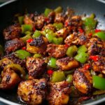 A quick and flavorful Black Pepper Chicken recipe featuring tender chicken pieces marinated and stir-fried with aromatic ginger, garlic, onions, and bell peppers in a rich black pepper soy-based sauce. Perfect for a weeknight dinner, this dish balances savory, sweet, and spicy notes with bold black pepper heat.