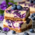 Delicious and creamy blueberry cheesecake bars featuring a graham cracker crust, smooth cheesecake layer, and a luscious blueberry topping. Perfect for a summer dessert or any occasion.