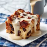 A warm and comforting bread pudding recipe made with day-old bread soaked in a rich custard mixture, baked until golden brown and served with a luscious homemade vanilla sauce. Perfect as a cozy family treat or a nostalgic holiday dessert.