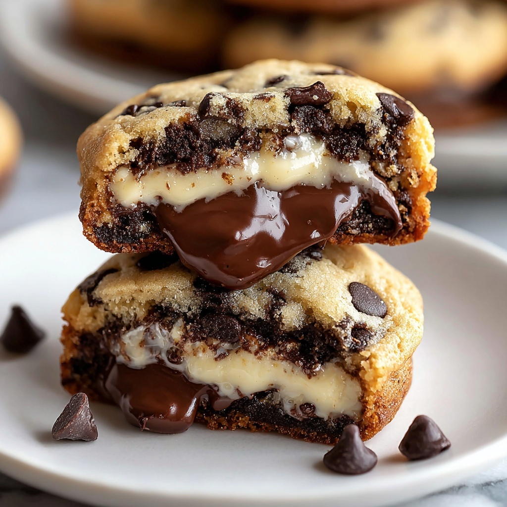 Decadent Cheesecake Stuffed Chocolate Chip Cookies combine the rich, creamy tang of cheesecake with classic chocolate chip cookie dough. These treats feature a soft, golden cookie exterior wrapped around a luscious, airy cheesecake filling, perfect for dessert lovers seeking a delightful twist on traditional cookies.