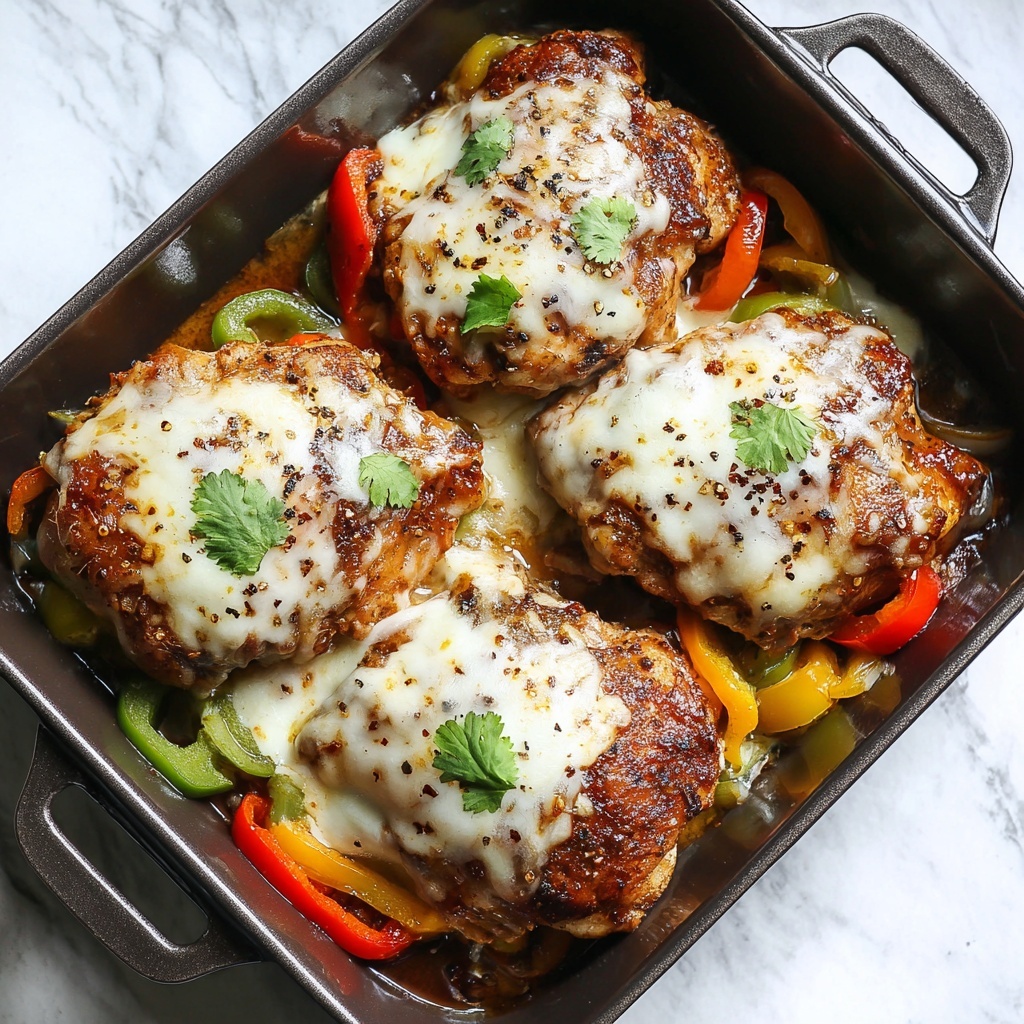 To elevate your presentation and flavor, consider topping this Cheesy Baked Fajita Chicken Recipe with a handful of fresh cilantro, a squeeze of lime juice, or even some creamy avocado slices. These additions brighten the meal and add tasty contrast to the rich cheese and spiced chicken.