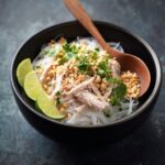 The final toppings make all the difference in bringing your dish to life. Sprinkle crushed roasted peanuts for a nutty crunch, scatter chopped fresh cilantro for vivid color and herbaceous scent, and don’t forget the lime wedges to squeeze over each serving for that perfect citrusy zing.