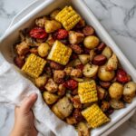 Now it’s time for corn and smoked sausage to join the party. Let them simmer alongside the other ingredients for another 10 to 12 minutes until everything is cooked through. The sausage brings smoky warmth, and the corn offers delightful sweetness and crunch.
