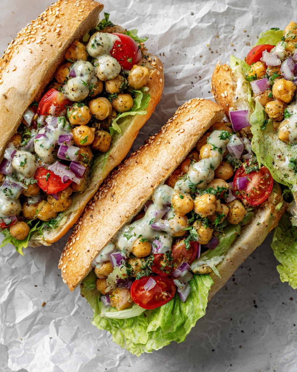 Getting this chickpea salad just right is all about simple, quality ingredients that come together effortlessly. Each element plays a crucial role whether it’s bringing creaminess, zest, or crunch to the sandwich.