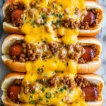 Chili Cheese Dog Bake is a warm, comforting casserole featuring buttery crescent rolls wrapped around hot dogs and melted American cheese, all nestled in a rich layer of hearty chili. Baked to golden perfection and topped with a garlic butter glaze, this dish is a family-friendly favorite perfect for casual dinners or game day snacks.