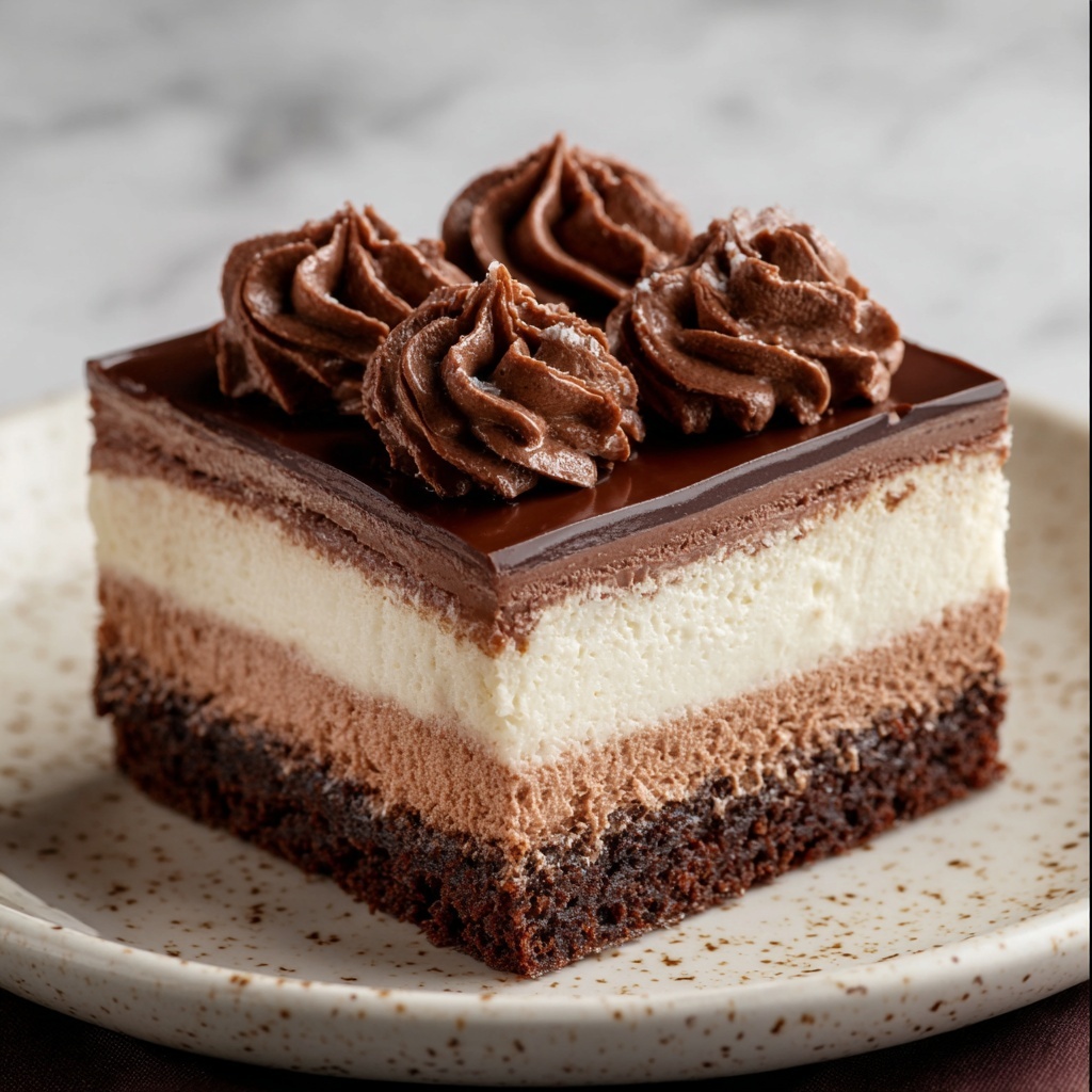 - Assemble and Chill: Spread the whipped chocolate mousse evenly over the cooled brownies. Refrigerate for at least 2 hours to allow the mousse to set firmly before serving.