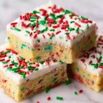 Delight in these festive Christmas Sugar Cookie Bars, perfect for holiday gatherings. Soft, buttery bars are topped with a smooth, creamy vanilla frosting and decorated with colorful holiday sprinkles, delivering all the classic sugar cookie flavors in an easy-to-share pan dessert.