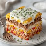 If you’re looking for a fiesta-worthy dish that’s as comforting as it is flavorful, this Cinco de Mayo Casserole Recipe is exactly what you need. It layers seasoned ground beef, creamy refried beans, sweet corn, and melty cheese between soft flour tortillas, all baked to bubbly perfection. This casserole is not only an absolute crowd-pleaser but also wonderfully simple to make, perfect for busy weeknights or festive gatherings. Every bite brings a warm, satisfying blend of textures and classic Mexican-inspired flavors that will have everyone asking for seconds.