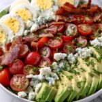 Simple but thoughtful garnishes elevate this Cobb Egg Salad Recipe in flavor and appearance. Fresh chives bring a slight punch of color and mild sharpness, while extra crumbled blue cheese and bacon allow guests to customize the richness. Adding whole or halved hard-boiled eggs and cherry tomatoes makes the dish look abundant and inviting, perfect for sharing at the table.