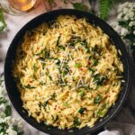 This dish is perfectly hearty on its own but pairs beautifully with light, crisp salads such as arugula with lemon vinaigrette or a simple tomato and cucumber salad. For a heartier meal, grilled chicken or seared salmon complements the creamy orzo with additional protein and flavor layers.