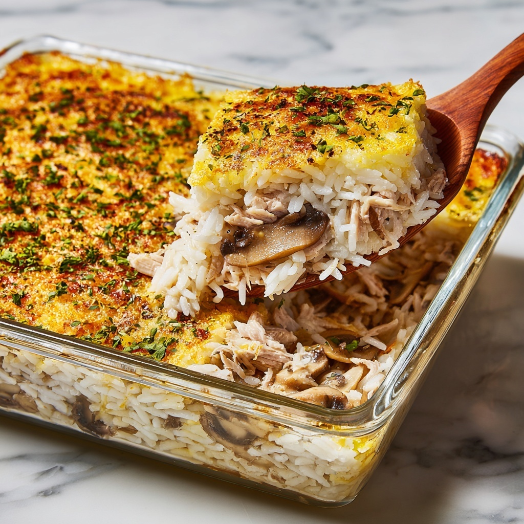 This Creamy Chicken and Rice Casserole is a comforting, easy-to-make dish perfect for family meals. Featuring tender shredded chicken combined with savory onion soup mix, creamy mushroom and chicken soups, and fluffy minute rice, all baked to perfection in a single dish. The result is a rich, hearty casserole that’s both satisfying and simple to prepare.