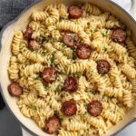 Return the browned sausage and cooked pasta to the skillet, tossing everything well so the pasta is evenly coated in that dreamy sauce and the sausage is distributed throughout. Heat it through until everything feels harmoniously warm and ready to serve.