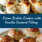 These Crème Brûlée Cookies combine a soft, buttery cookie base with a luscious vanilla custard filling, topped with a caramelized brûlée sugar crust. Inspired by the classic French dessert, these filled cookies offer a delightful mix of creamy, crunchy, and sweet flavors perfect for any dessert lover.