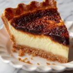 This pie is best served chilled, so reheating isn’t typically necessary. If you want to warm a slice slightly, do so gently in a low oven or microwave for a few seconds, but remember that the caramelized sugar topping may soften when heated.