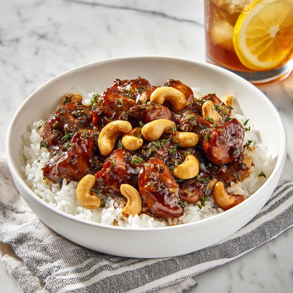 5. Serve: Serve the cashew chicken hot over cooked rice. Garnish with sliced green onions for fresh flavor and added color.