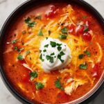 This Crock Pot Chicken Fajita Soup is a hearty and flavorful slow-cooked meal featuring tender shredded chicken simmered with diced tomatoes, bell peppers, and taco seasoning. Perfect for an easy weeknight dinner, this soup combines the savory spices of fajitas into a comforting broth, garnished with sour cream, cheddar cheese, and fresh cilantro.