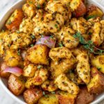 This Crockpot Ranch Chicken and Potatoes recipe is a comforting and easy-to-make meal featuring tender baby potatoes, smoky sausage, and a creamy ranch-flavored sauce, all slow-cooked to perfection and topped with melted cheddar cheese. Ideal for a hassle-free dinner, this dish combines hearty ingredients in a flavorful, cheesy casserole.