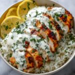 This Dump-and-Bake Chicken Tzatziki with Rice is a simple and flavorful one-pan meal perfect for busy weeknights. Tender boneless chicken breasts are seasoned with herbs and spices, laid over uncooked rice soaked in savory chicken broth, then topped with creamy tzatziki sauce before baking. The dish cooks entirely in the oven, resulting in juicy chicken and perfectly tender rice infused with Mediterranean flavors. Garnished with fresh cucumbers, parsley, and lemon wedges, it’s a wholesome and delicious dinner the whole family will enjoy.