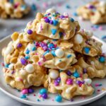 - Add Toppings: Immediately after forming each candy, top with the reserved M&M’s and pastel sprinkles, if using, to add color and texture.