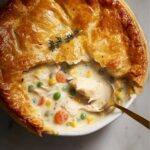 Reheat your pot pie leftovers in the oven at 350°F until warmed through to maintain that crispy biscuit topping and bubbly filling. Avoid microwaving if possible, since the crust can become soggy. Oven reheating ensures you recapture the original texture and taste.