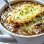 This French Onion Beef Short Rib Soup is a luxurious twist on the classic French onion soup, featuring tender, fall-apart beef short ribs simmered in a rich caramelized onion and beef broth base. Finished with crusty bread and melted Gruyère cheese under the broiler, it’s a comforting, gourmet soup perfect for chilly evenings.