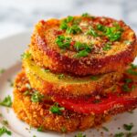 Fried Green Tomatoes are a classic Southern appetizer featuring tangy, firm green tomatoes sliced, breaded, and fried until golden and crispy. Perfectly seasoned with a blend of spices and served warm, these crispy tomato slices make a delicious vegetarian snack or side dish.
