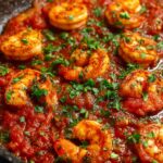This Garlic Shrimp in Tomato Sauce recipe offers a quick and flavorful seafood dish featuring succulent shrimp cooked in a rich, garlicky tomato sauce with hints of oregano, smoked paprika, and a touch of white wine. Perfectly paired with pasta, rice, or crusty bread, it’s a delightful and easy meal ready in just 20 minutes.