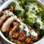 These Grilled Chicken & Broccoli Bowls feature tender grilled chicken breasts or thighs seasoned perfectly with paprika and garlic, served over a bed of rice or quinoa with steamed broccoli and a luscious creamy garlic sauce. Ready in just 45 minutes, this wholesome meal balances protein, veggies, and grains for a delightful and satisfying bowl.