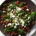 Remove the skillet from heat and sprinkle the crumbled feta cheese evenly on top. The residual warmth will gently melt the feta, adding a luscious, creamy tang that perfectly balances the savory beef and earthy spinach.