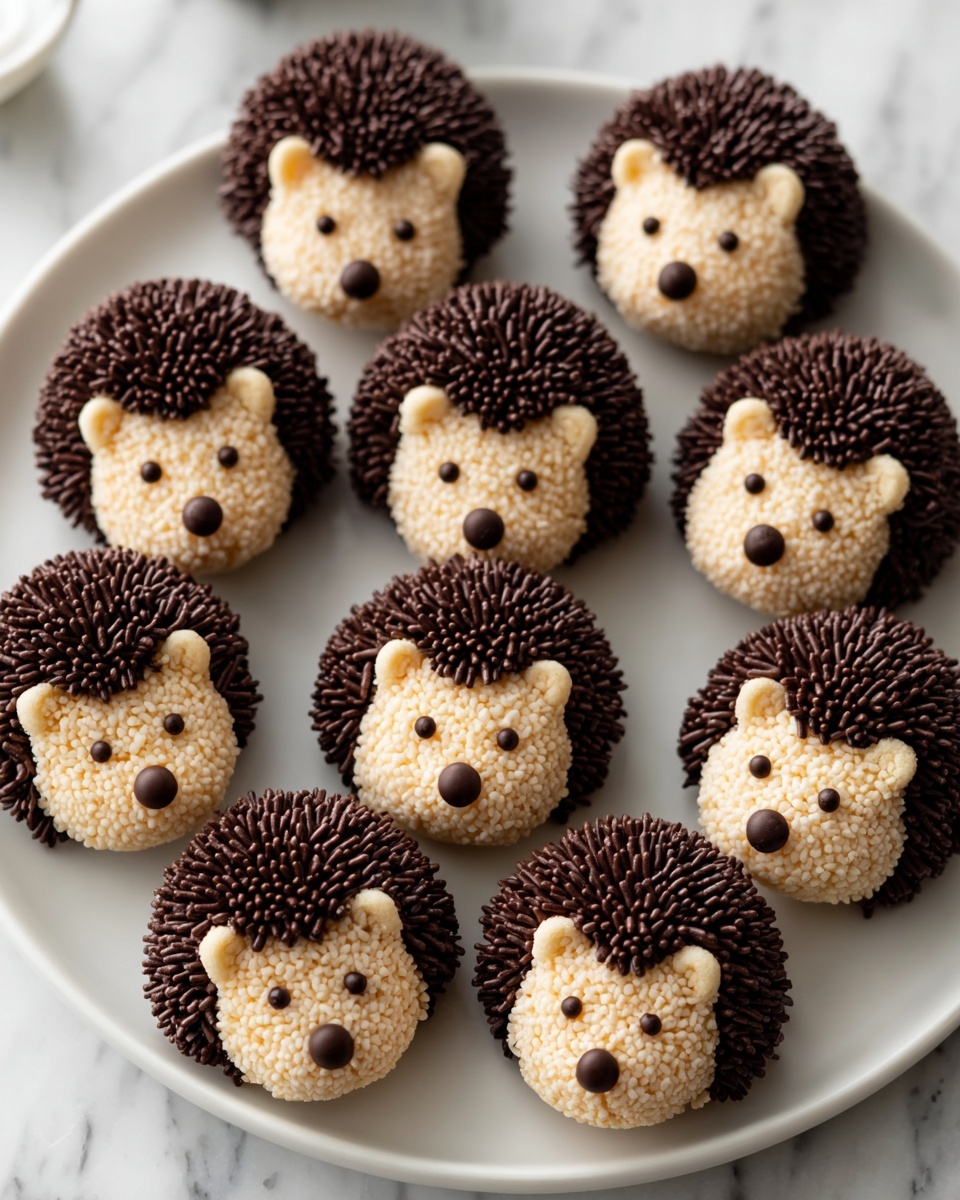 Arrange the Hedgehog Cookies on a rustic wooden board or a charming festive platter surrounded by pine sprigs and holly berries to delight guests visually. You can also place them in individual clear boxes tied with a satin ribbon for delightful edible gifts that showcase how thoughtful and adorable this sweet treat truly is.