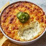 This irresistible cheese dip is a creamy, cheesy delight perfect for game days, parties, or snack time. Made with a blend of cream cheese, cheddar, and mozzarella, enhanced with spicy jalapeños and green chilies, and baked to bubbly perfection, this dip is sure to be a crowd-pleaser.