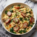 A creamy and flavorful Italian Sausage Orzo recipe featuring savory sausage, tender orzo pasta, fresh spinach, and a rich Parmesan-infused cream sauce, perfect for a comforting and easy weeknight meal ready in just 30 minutes.