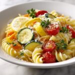 A light and flavorful Lemon Butter Pasta with sautéed fresh vegetables, perfectly coated in a creamy lemon-garlic butter sauce. This quick and easy dish combines tender pasta, zucchini or yellow squash, and juicy cherry tomatoes for a refreshing meal ideal for busy weeknights.