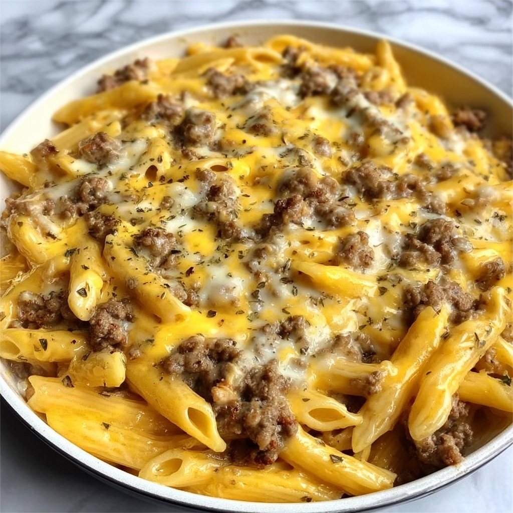 Loaded Cheeseburger Alfredo Pasta is a hearty and delicious meal combining the flavors of classic cheeseburgers with creamy Alfredo pasta. This comforting dish features perfectly cooked pasta tossed with seasoned ground beef, rich Alfredo sauce, ketchup, mustard, and an irresistible blend of cheddar and mozzarella cheeses. Topped with crunchy pickles and fresh red onions, it’s an easy stovetop recipe that’s perfect for a family-friendly dinner.