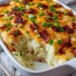 Loaded Mashed Potatoes Casserole is the ultimate comfort food combining creamy mashed potatoes with cheese, bacon, and green onions baked to bubbly perfection with a golden top. This hearty casserole makes a delicious side dish perfect for family dinners and gatherings.