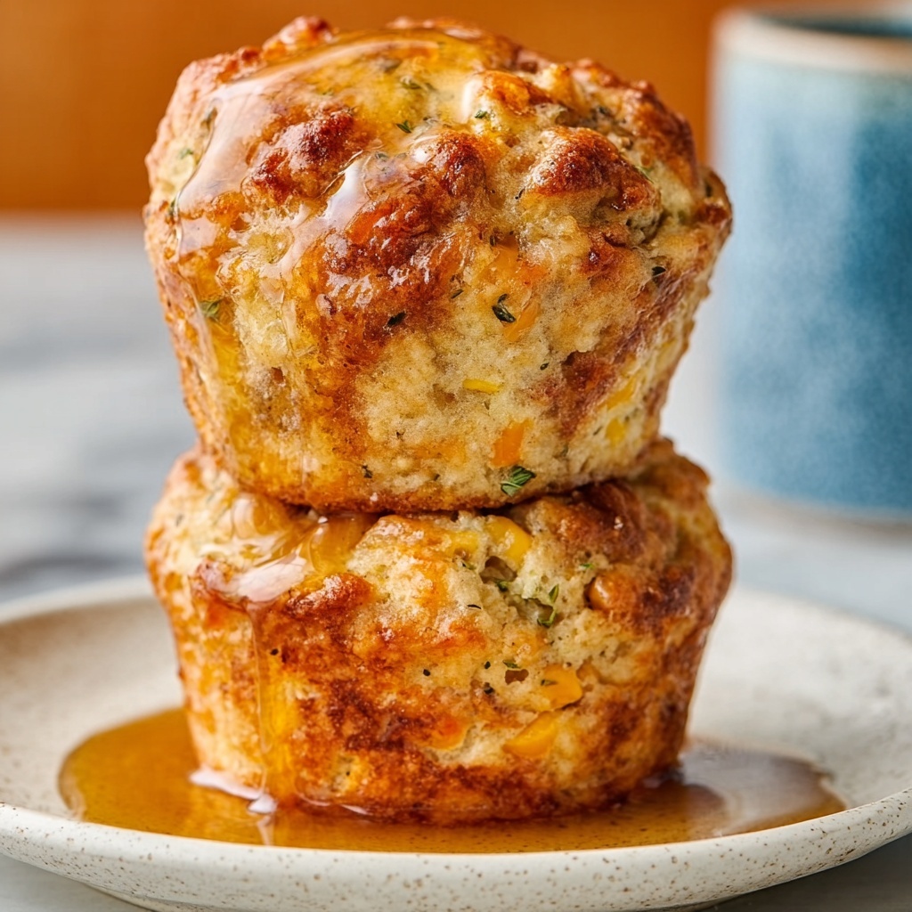 Sprinkle a little powdered sugar on top or drizzle additional maple syrup right before serving. Fresh herbs like chopped chives or parsley add a bright contrast and make your muffins look as good as they taste.
