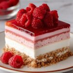 This No Bake Raspberry Cheesecake is a creamy, luscious dessert that requires no oven time. With a crunchy graham cracker crust, smooth cream cheese filling, and a tangy raspberry topping, it’s perfect for warm days or when you want a quick and impressive treat. Refrigerate for a few hours to let it set, and enjoy a refreshing, fruity cheesecake that’s both rich and light.