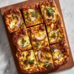 This No-Knead Focaccia with Shallot Pissaladière combines the traditional airy texture of focaccia bread with a rich, savory topping of caramelized shallots, anchovies, garlic, thyme, and kalamata olives. It’s an effortless overnight dough preparation resulting in a golden, flavorful flatbread perfect for sharing as an appetizer or light meal.