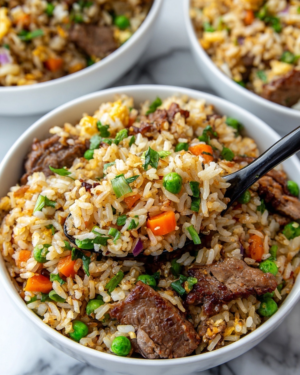The beauty of this Onion Beef Fried Rice Recipe lies in its simplicity: each ingredient plays an essential role in building rich flavors and inviting textures. The combination of fresh vegetables, juicy beef, and fluffy day-old rice creates a wonderful balance that’s both satisfying and easy to prepare.