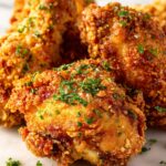 This Oven-Fried Chicken recipe offers a healthier alternative to traditional fried chicken by baking crispy, flavorful chicken pieces coated in a seasoned flour mixture after marinating them in spiced buttermilk. The technique creates juicy, golden-brown chicken with a satisfying crunch without the mess or extra fat of deep frying. Ready in about an hour plus marinating, it’s perfect for a savory Southern-American main course.