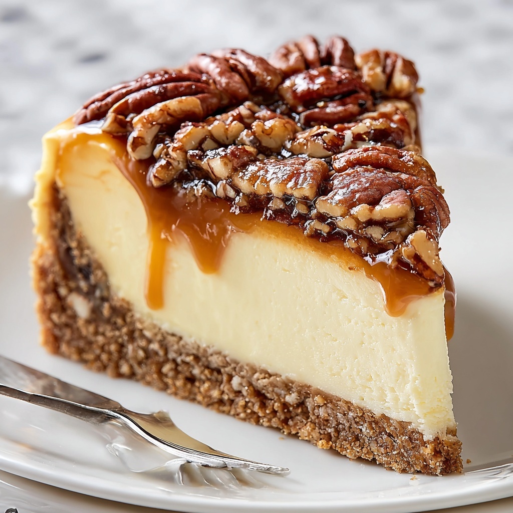 If you’re feeling festive, serve individual mini cheesecakes with homemade pecan topping in small jars or cups for a charming personal touch. Layering thin slices with caramel drizzle on plates and adding a sprig of mint creates instant elegance for holiday dinners. You can even try cutting the cheesecake into bite-sized bars for finger-food appeal at parties—easy to enjoy with less fuss!